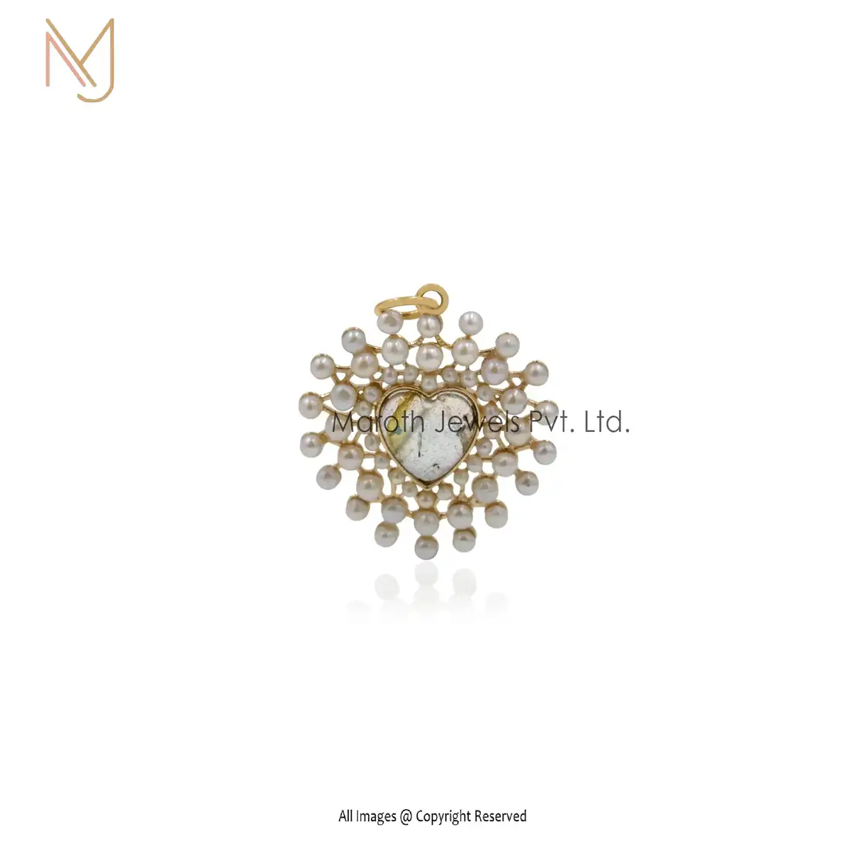 Wholesale 14K Yellow Gold Coral Small Stone Pearl Gemstone Heart Pendant Jewelry