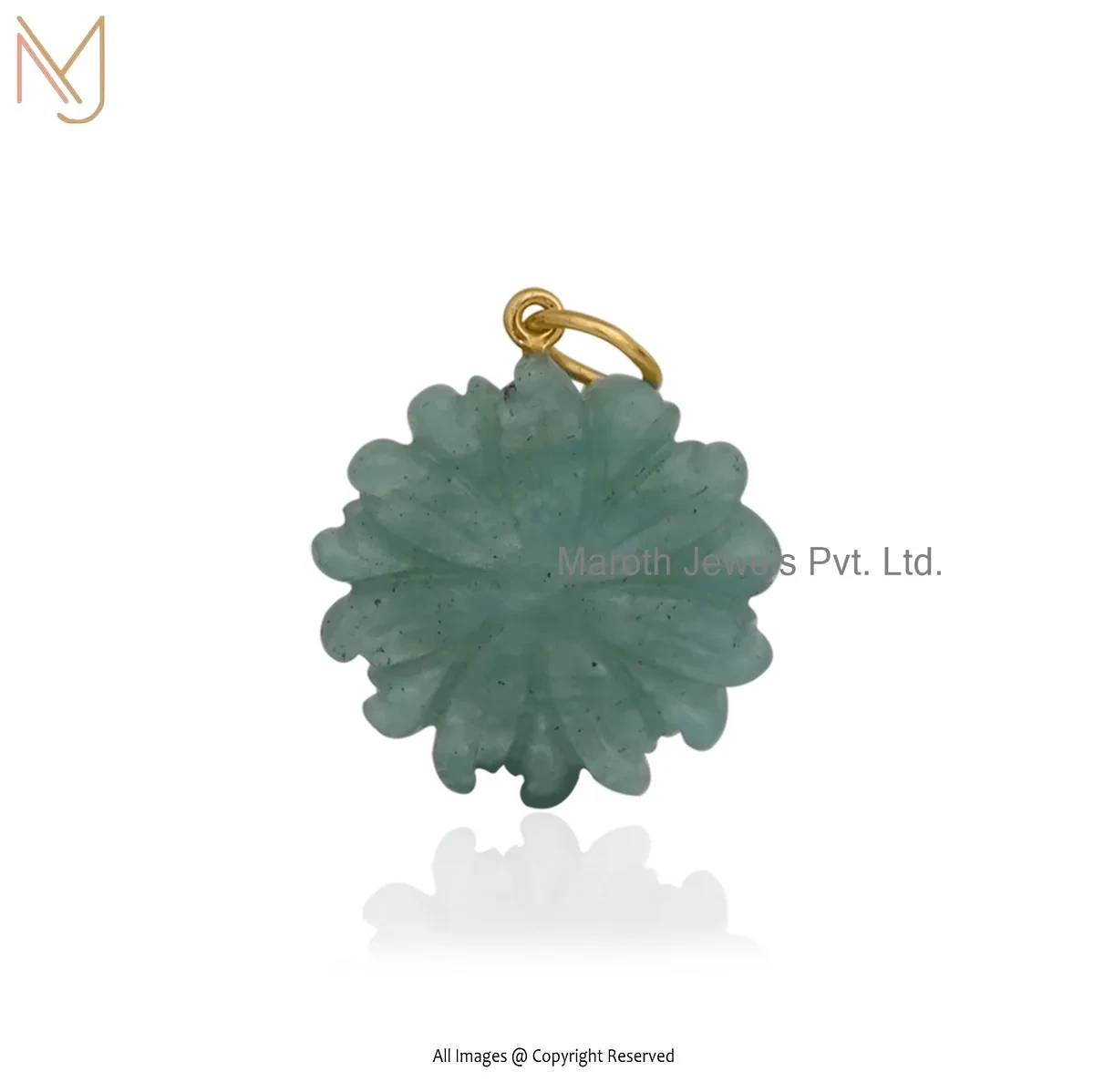 Wholesale 14K Yellow Gold Cubic Zircon & Amazonite Flower Pendant