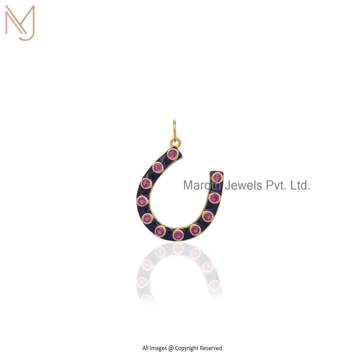 Wholesale 14K Yellow Gold Cubic Zircon & Black Enamel Gemstone Horseshoe Pendant