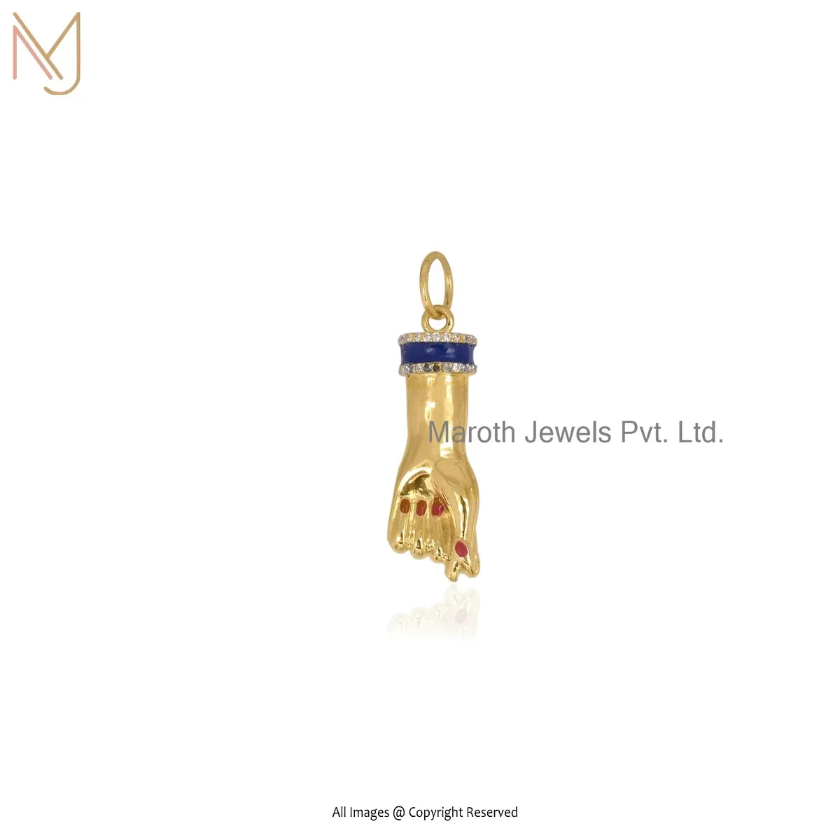 Wholesale 14K Yellow Gold Cubic Zircon & Enamel Gemstone Figa Hand Charm Pendant