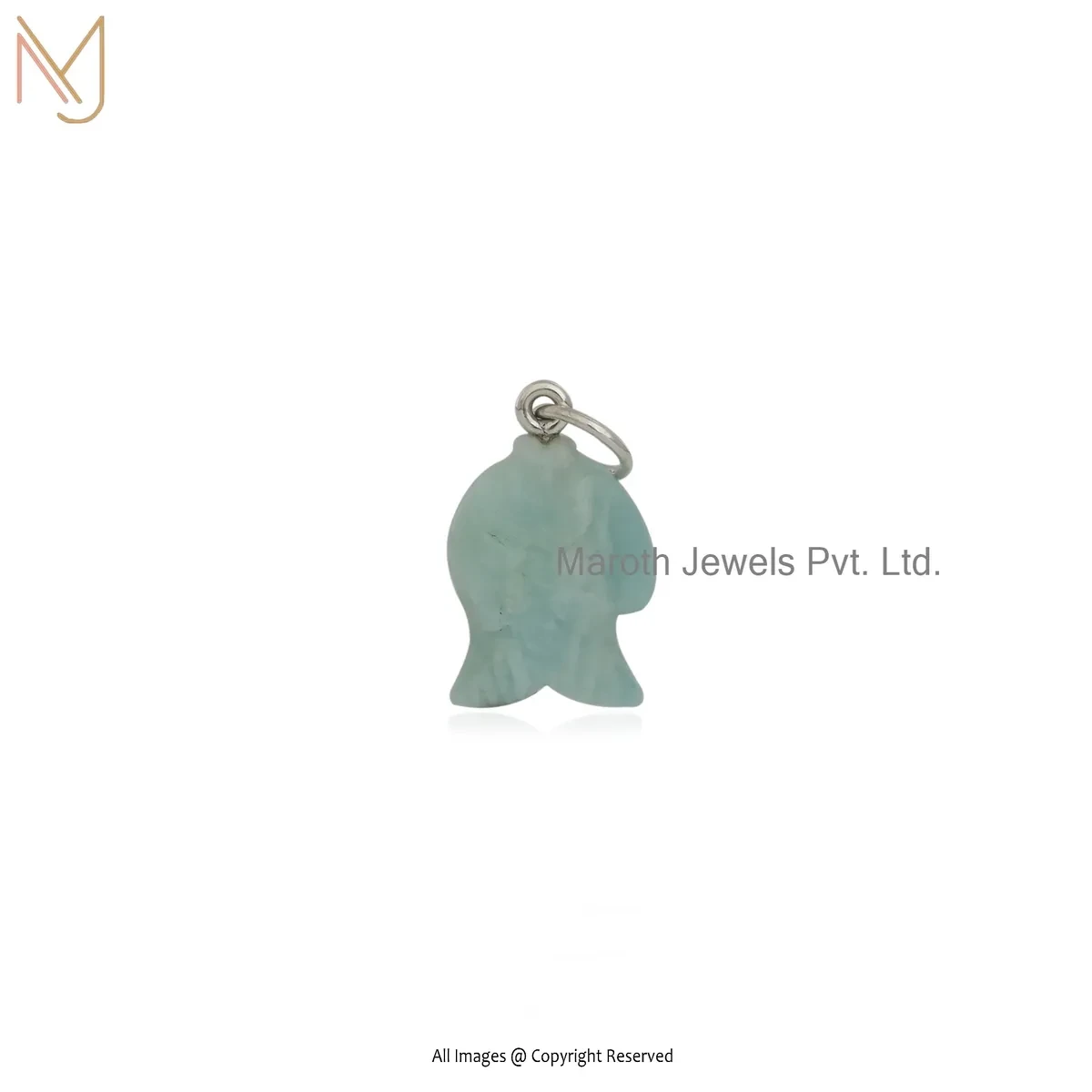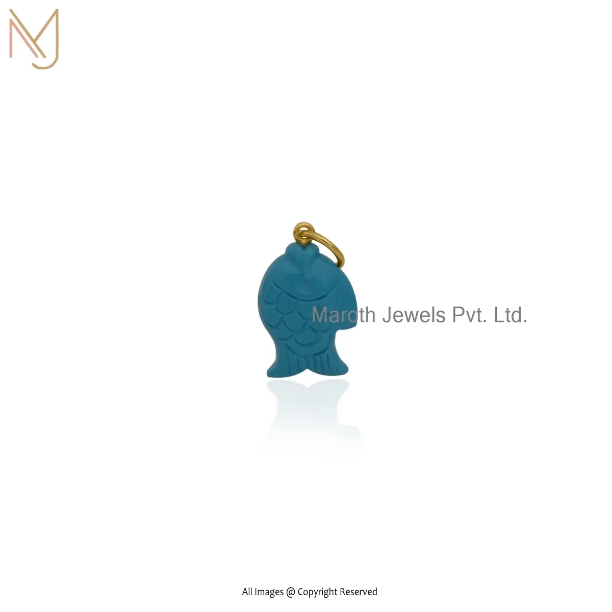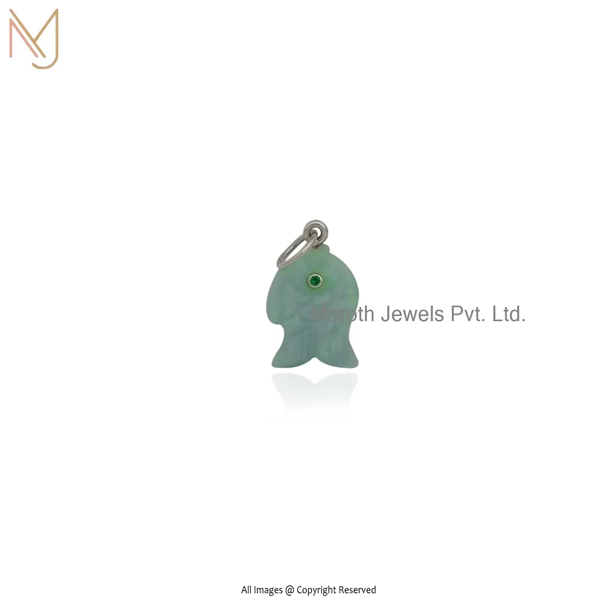 Wholesale 14K Yellow Gold Cubic Zircon & Green Opal Gemstone Fish Pendant