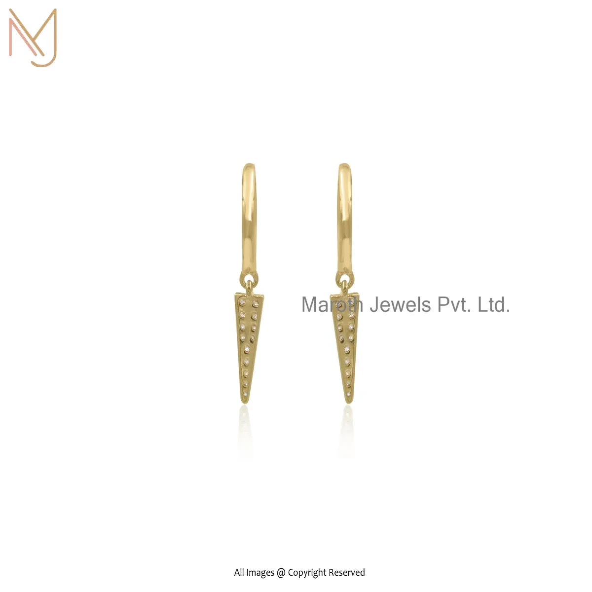 Wholesale 14K Yellow Gold Diamond Cubic Zircon Spike Huggie Hoop Earrings