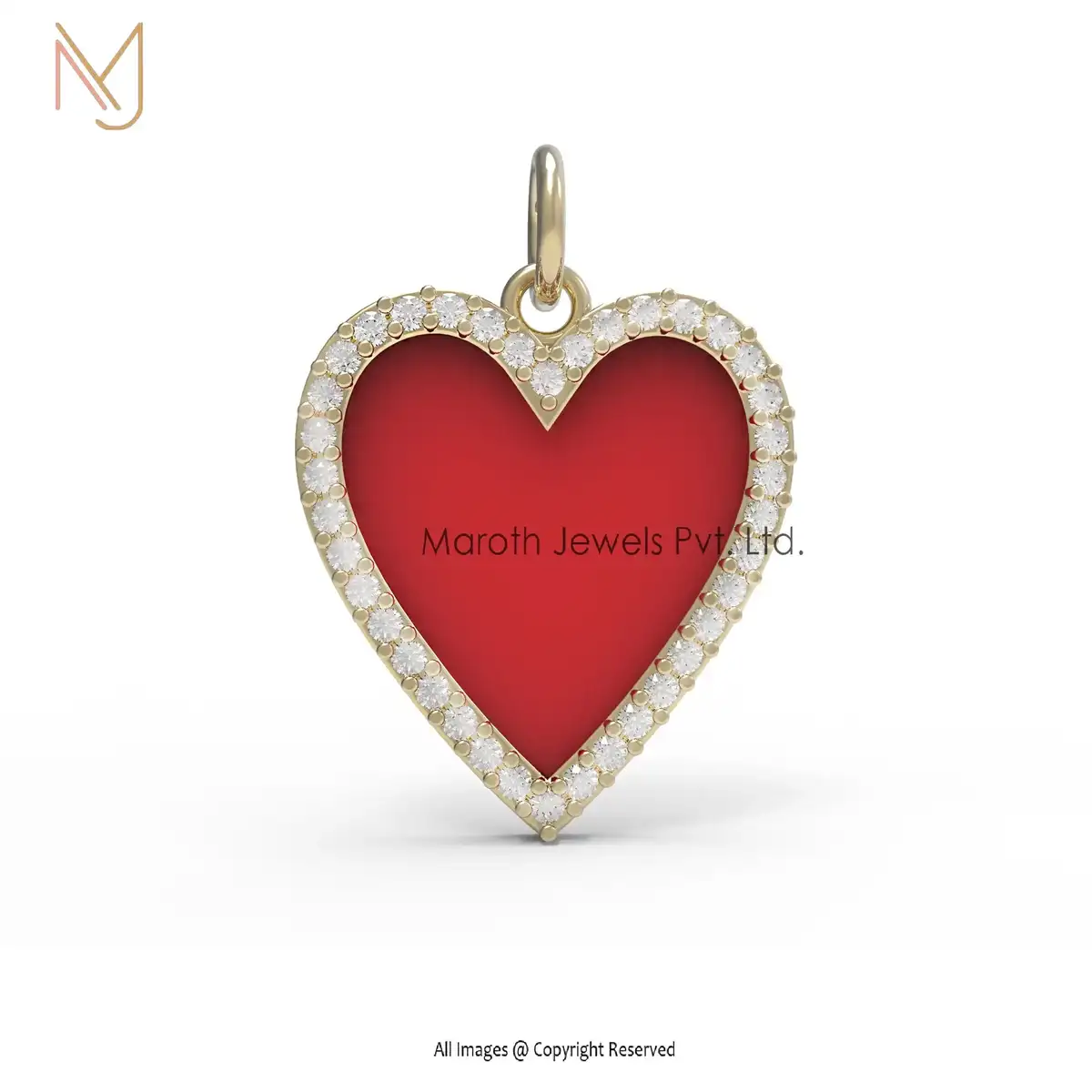 Wholesale 14K Yellow Gold Diamond Red Enamel Heart Pendant Jewelry