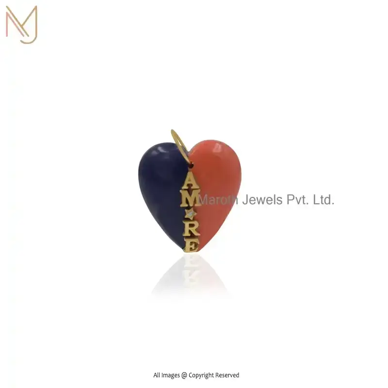 Wholesale 14K Yellow Gold Green Opal And Moonstone White CZ Letter Amore Heart Pendant