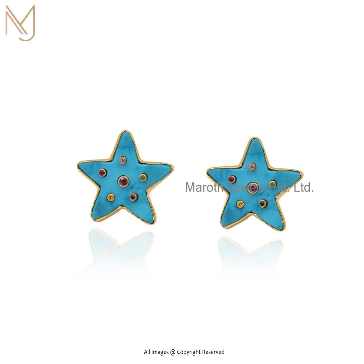 Wholesale 14K Yellow Gold Moonstone And Multi Gemstone Star Earring