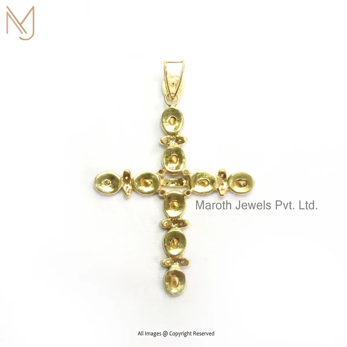 Wholesale 14K Yellow Gold Pave Diamond And Rose Cut Diamond Cross Pendant