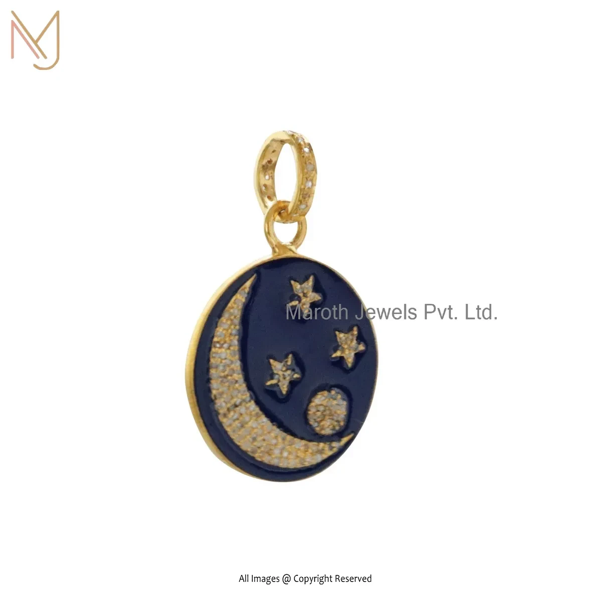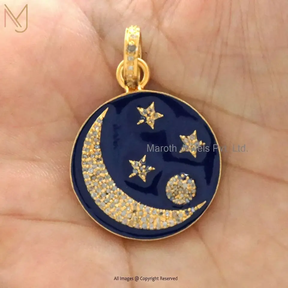 Wholesale 14K Yellow Gold Pave Diamond Enamel Crescent Moon Star Pendant