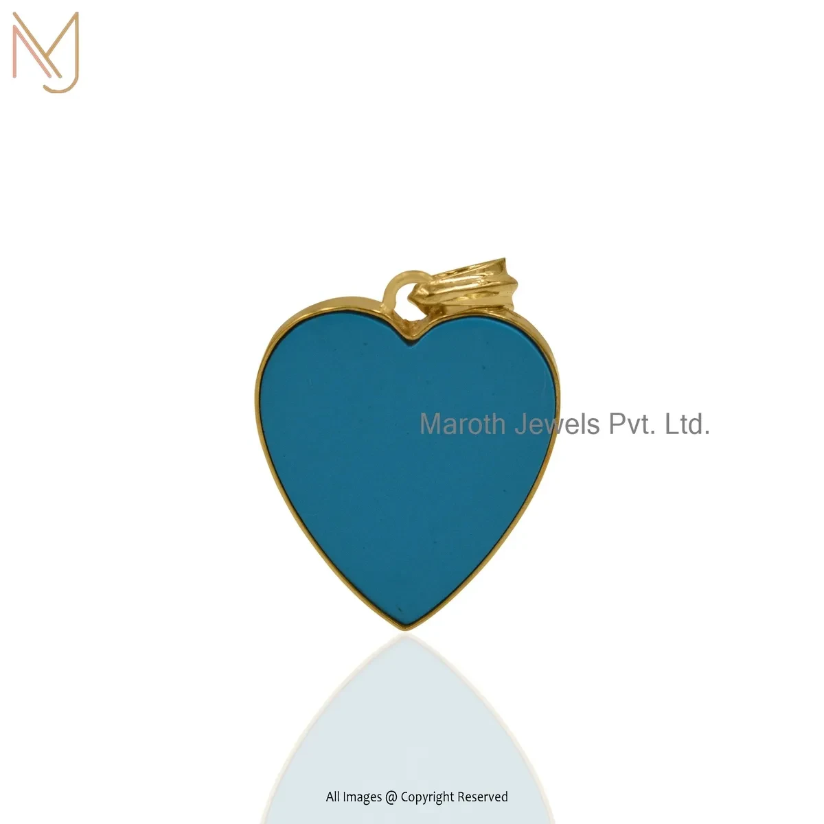 Wholesale 14K Yellow Gold Pink Cubic Zircon & Turquoise Gemstone Split Heart Pendant