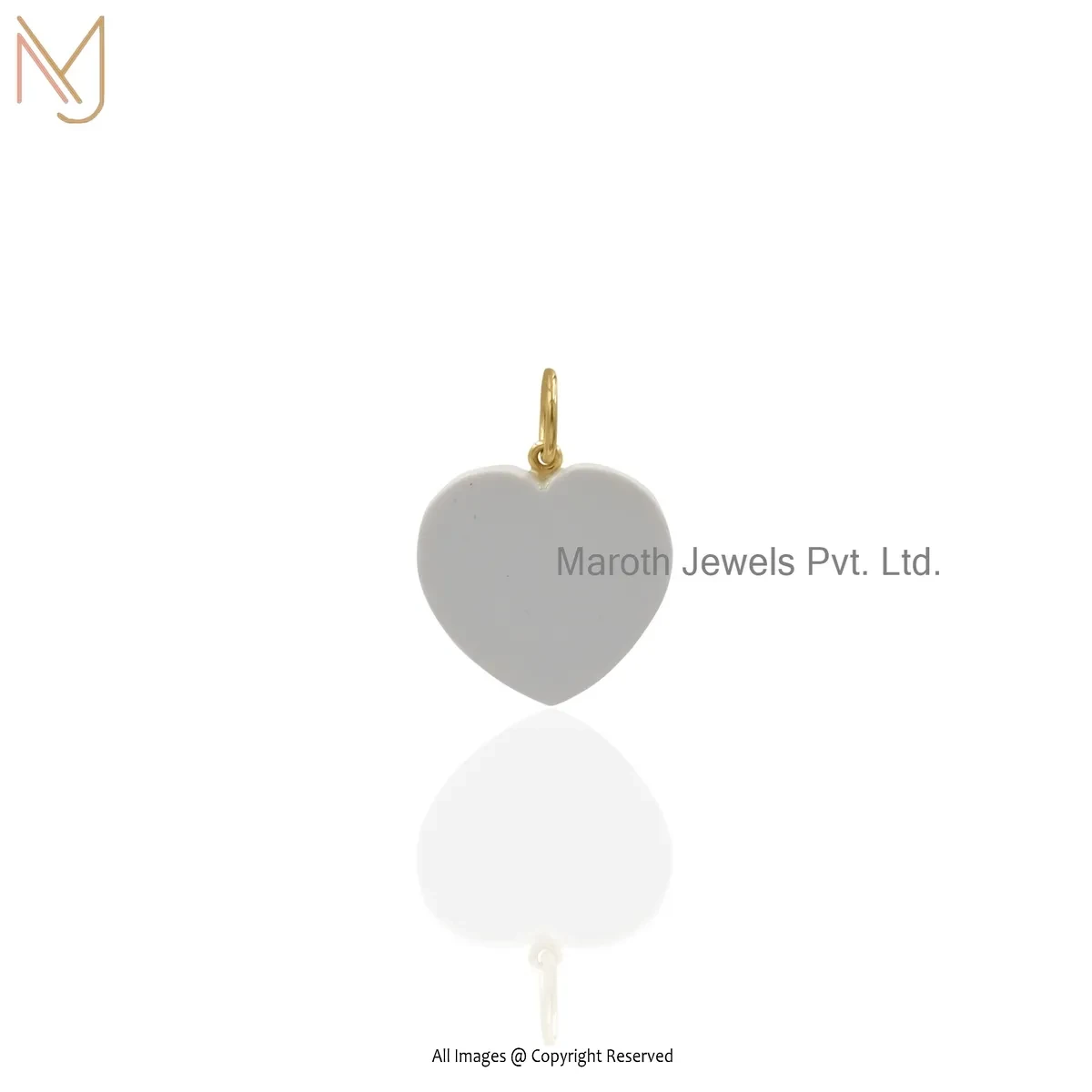 Wholesale 925 Silver Yellow Gold Plated Pink Cubic Zircon & White Agate Gemstone Heart Pendant
