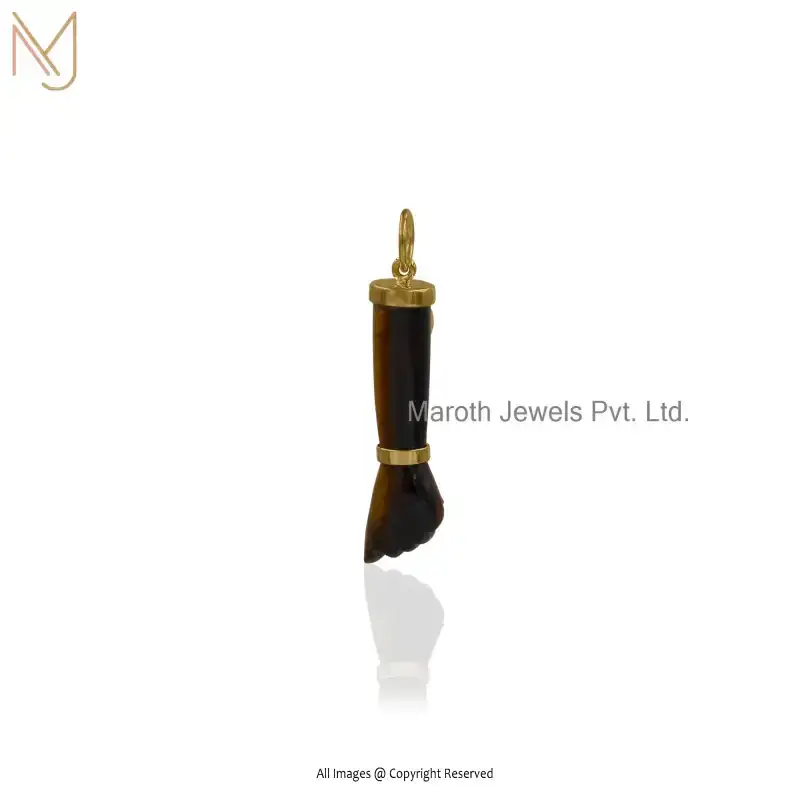 Wholesale 14K Yellow Gold Tiger's Eye & Amethyst Figa Pendant