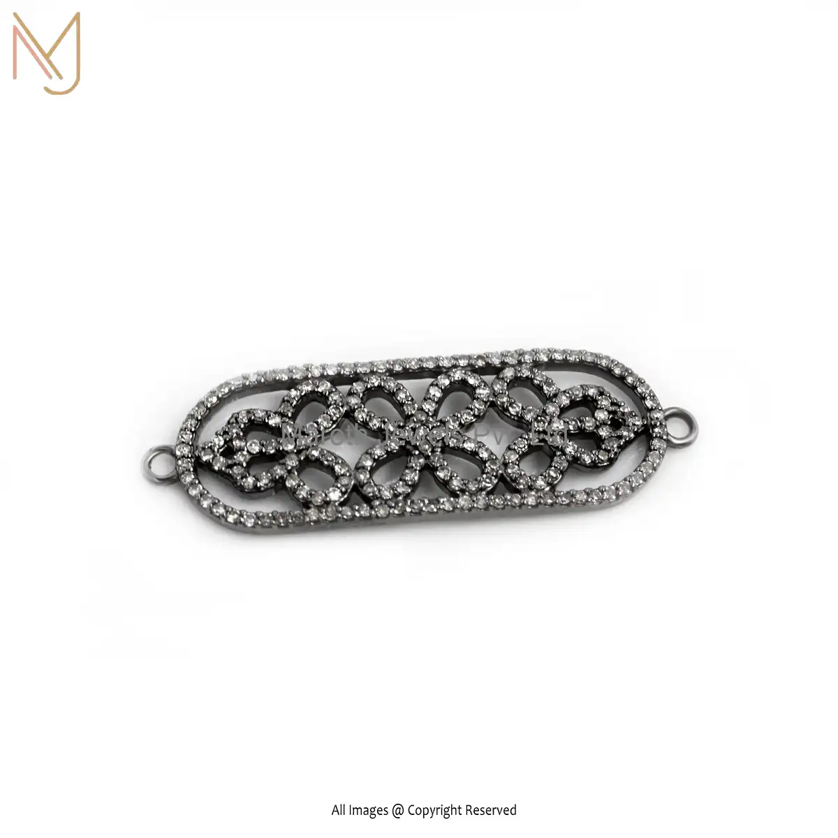 Wholesale 925 Silver Gray Rhodium Plated Pave Diamond Bracelet Connector Finding Jewelry