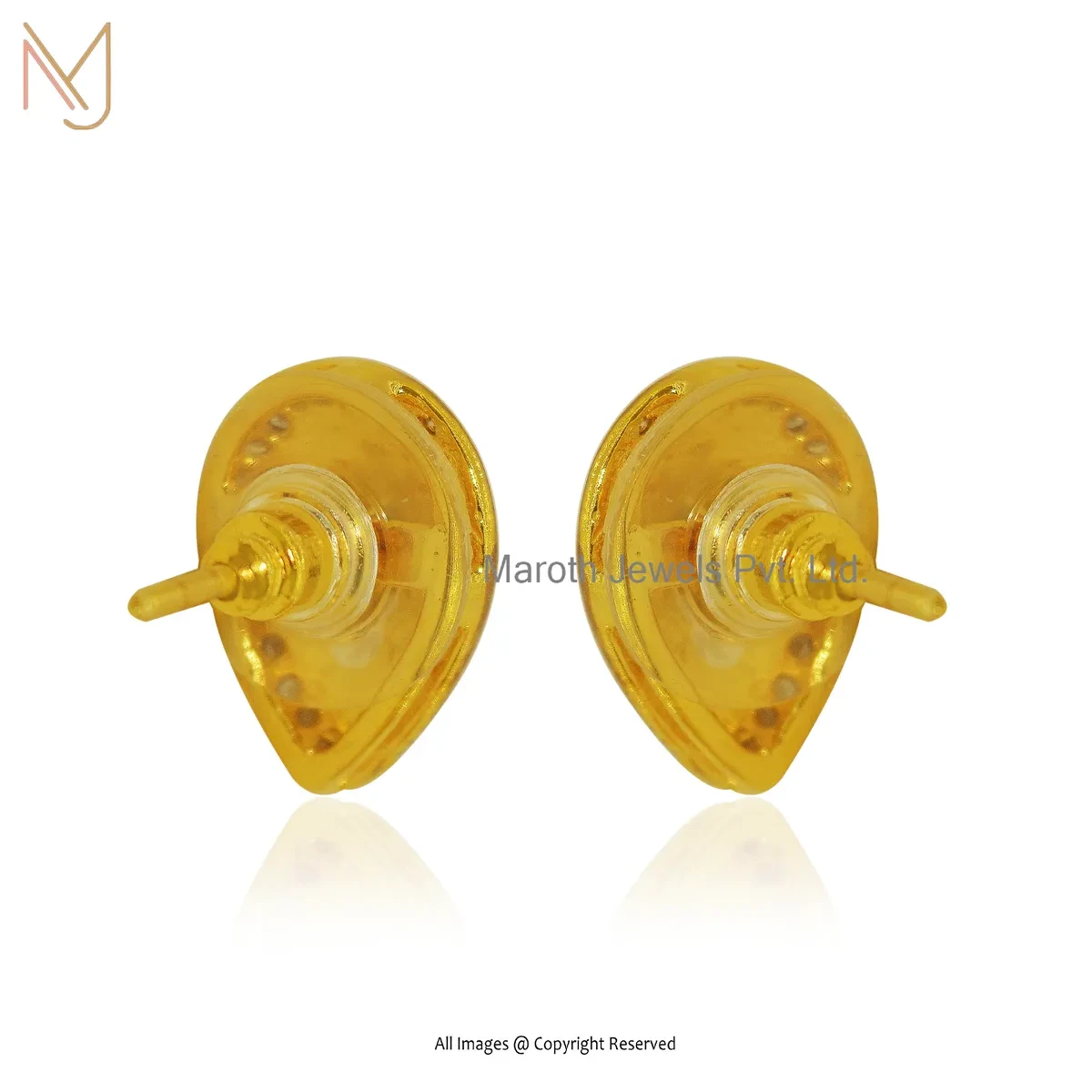 Wholesale 925 Silver Rhodium Yellow Gold Plated Pave Diamond & Polki Rose Cut Diamond Stud Earring