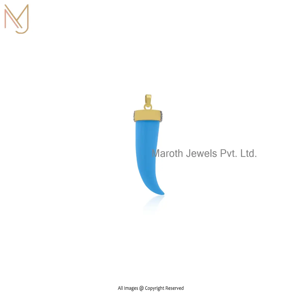 Wholesale 925 Silver Rhodium Yellow Gold Plated Pave Diamond Turquoise Horn Pendant Jewelry