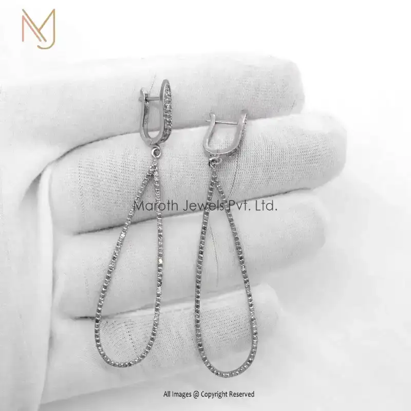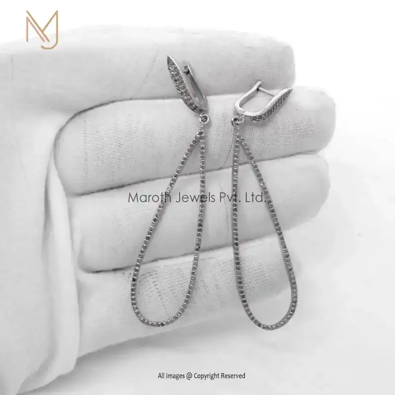 Wholesale 925 Silver White Gold Plated Pave Diamond Drop Earrings Jewelry