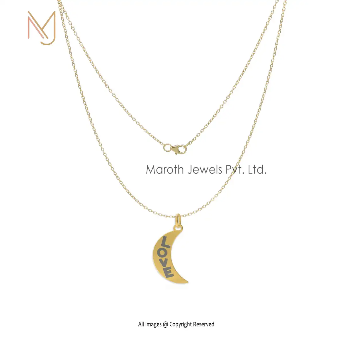 Wholesale 925 Silver Yellow Gold & Black Rhodium Plated Half Moon Love Pendant Jewelry