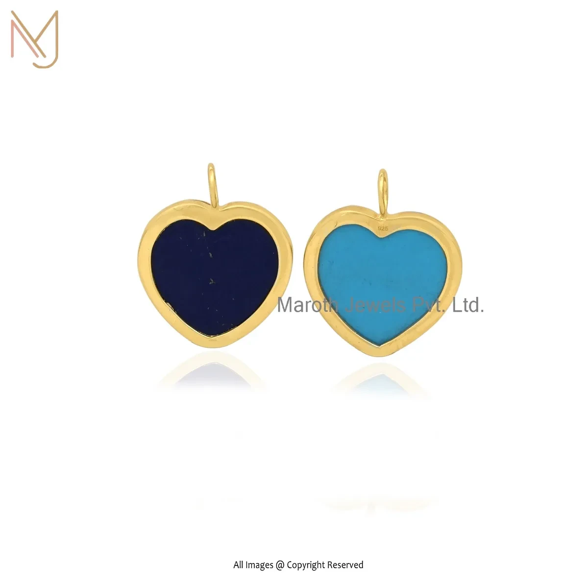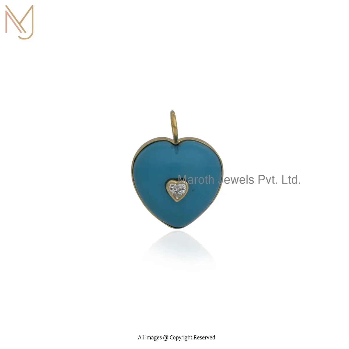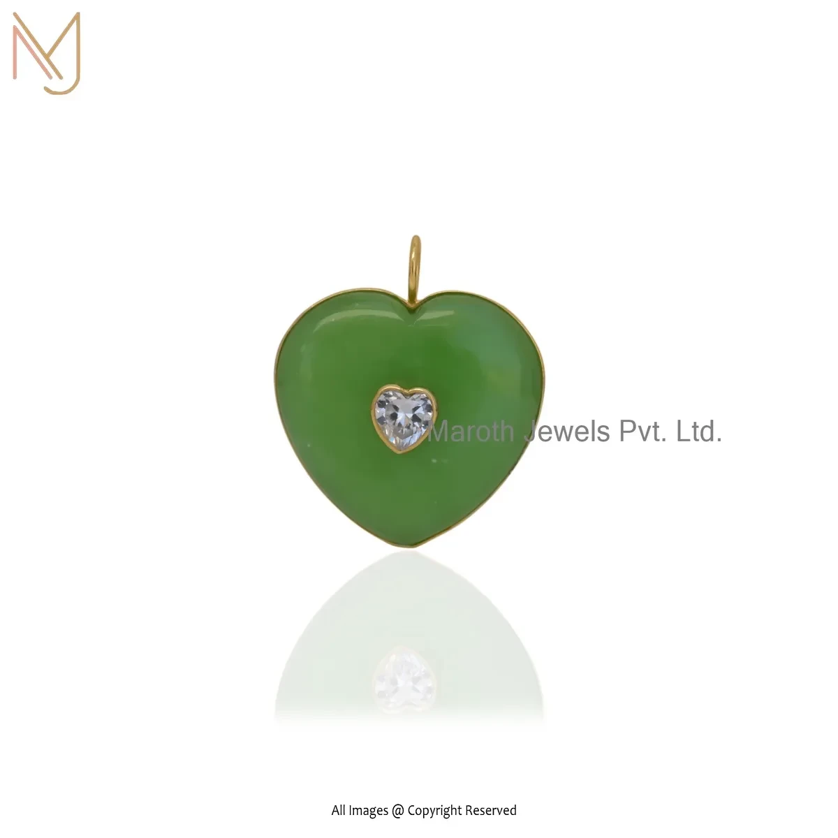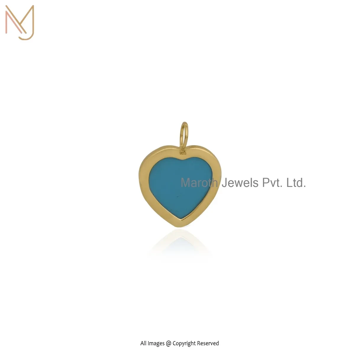 Wholesale 925 Silver Yellow Gold Plated Cubic Zircon & Amazonite Heart Pendant