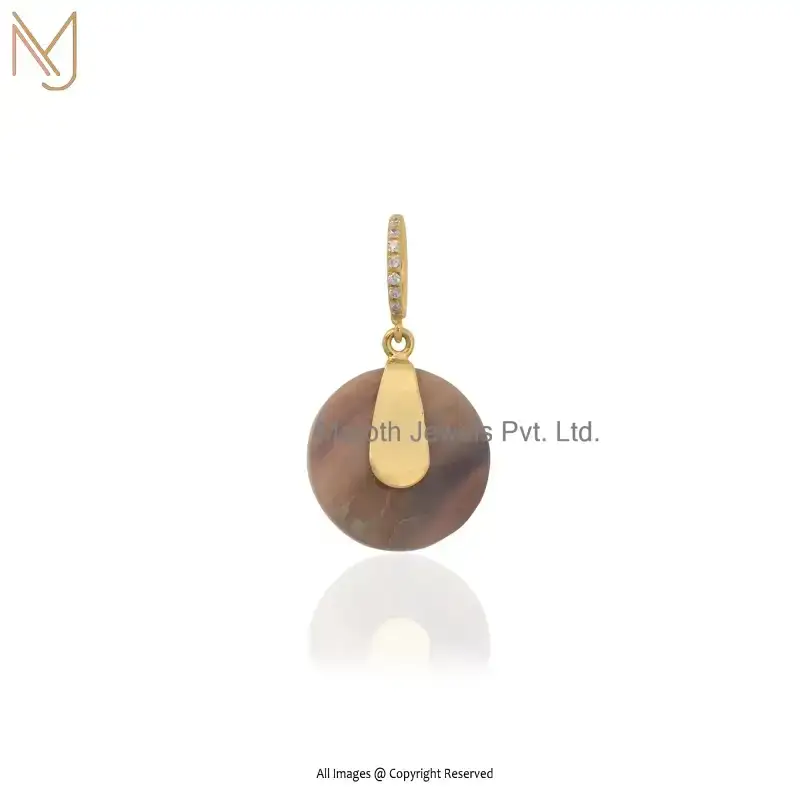 Wholesale 925 Silver Yellow Gold Plated Mother Of Pearl And Green Opal Cubic Zircoina Round Pendant