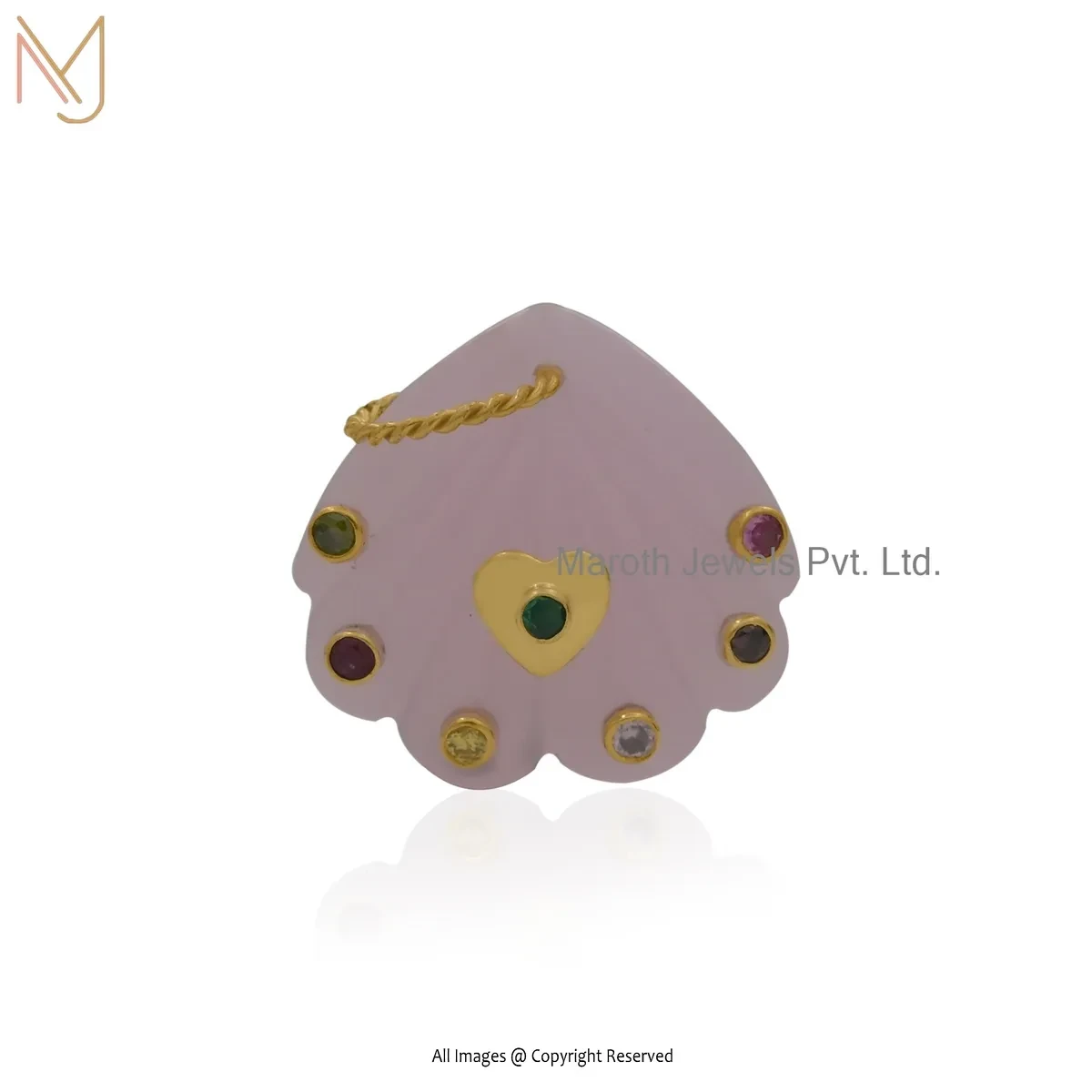 Wholesale 925 Silver Yellow Gold Plated Mother Of Pearl & Multi Gemstone Shell Pendant
