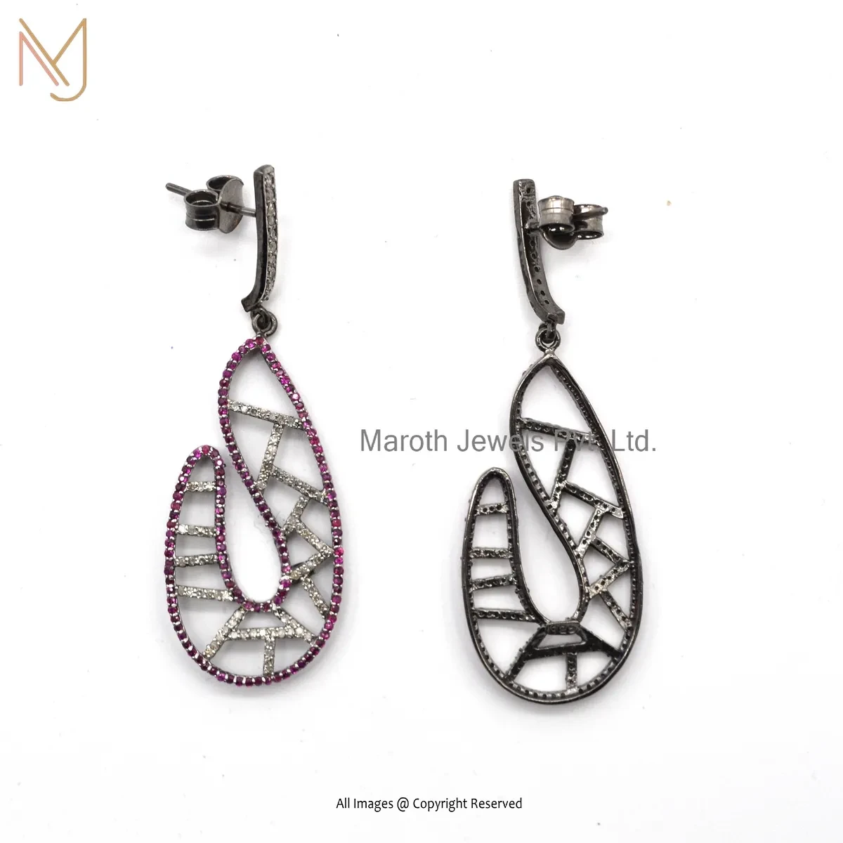 Wholesale 925 Silver Yellow Gold Plated Pave Diamond Ruby Gemstone Dangle Earring