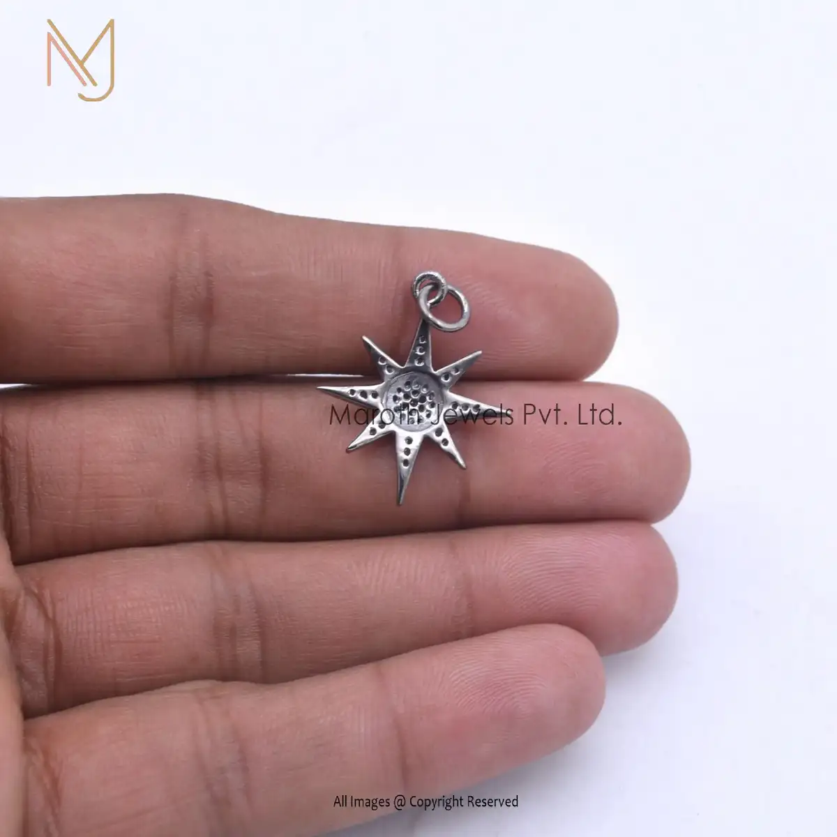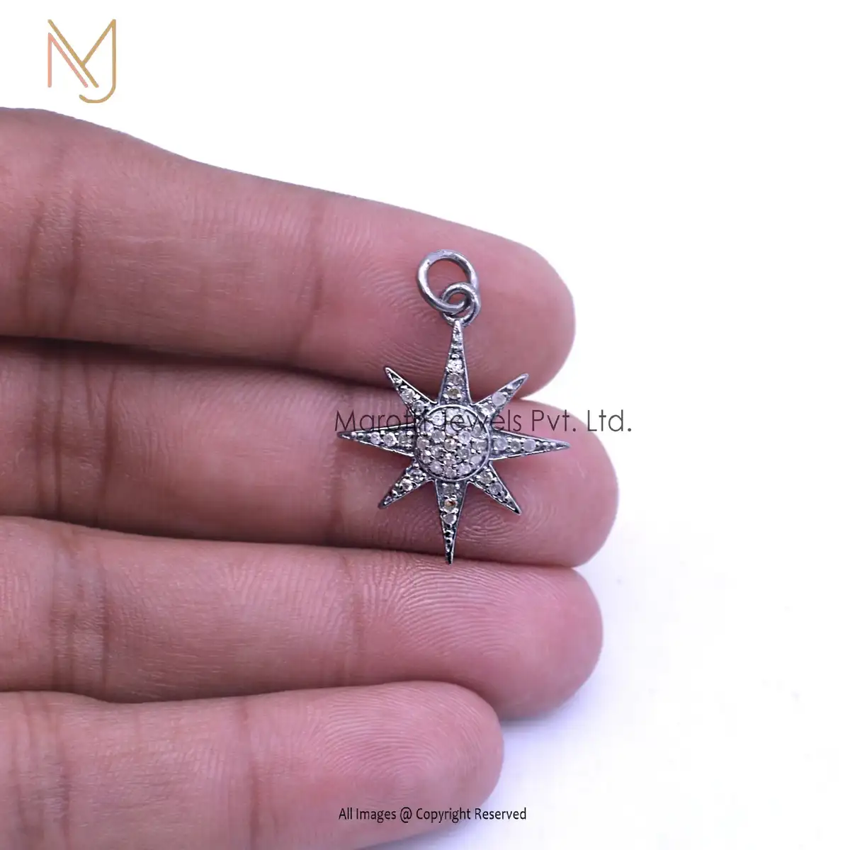 Wholesale 925 Silver Yellow Gold Plated Pave Diamond Starburst Charm Pendant Jewelry