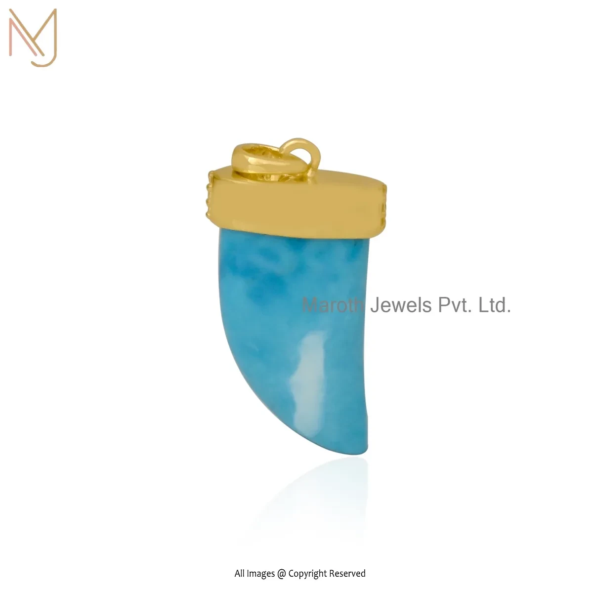 Wholesale 925 Silver Yellow Gold Plated Turquoise & Cubic Zircon Horn Pendant