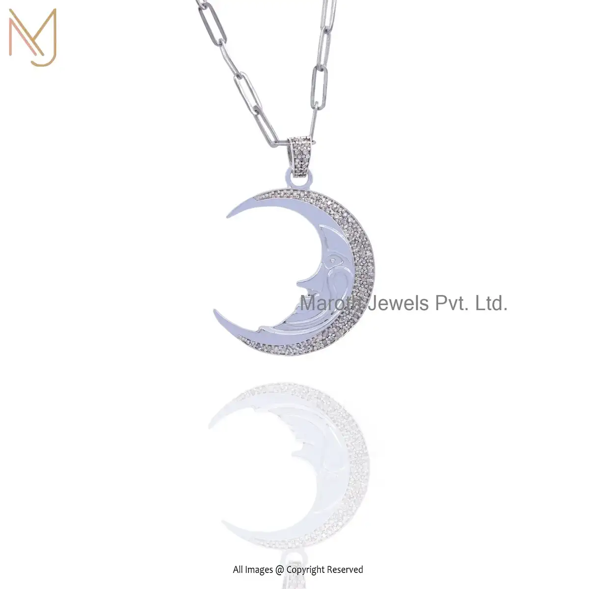 Wholesale 925 Sterling Silver Diamond Crescent Moon Face Pendant