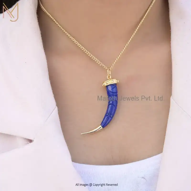 Wholesale 925 Sterling Silver Yellow Gold Plated Lapiz Lazuli Tusk Pendant